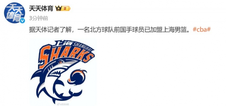 8月27日讯 据京媒《天天体育》报道,一名北方球队前国手球员已加盟上海男篮。