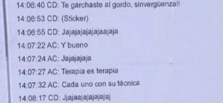 马拉多纳前伴侣奥赫达公开了一段聊天截图,内容为精神科医生奥古斯蒂娜与心理学家迪亚斯的对话。