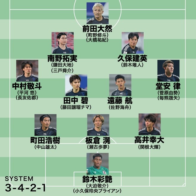 门将:铃木彩艳(帕尔马)、大迫敬介(广岛三箭)、小久保玲央-布莱恩(圣图尔登)