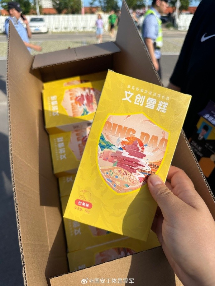 据博主“国安工体是冠军”透露,青岛西海岸专门为国安远征军免费发放了文创冰棍。