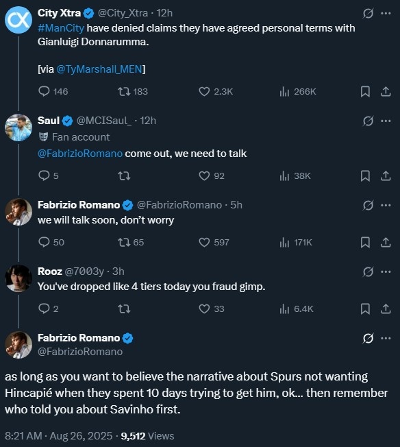 8月26日讯 名记罗马诺今天在推特发文,回应球迷质疑。