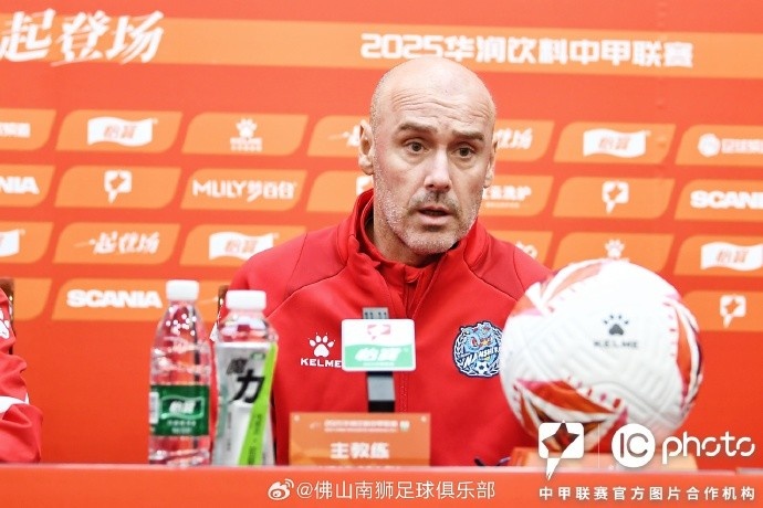 4月12日晚间,2025华润饮料中甲联赛第4轮佛山南狮队赛前新发布会召开,主教练胡安携队员罗歆出席。